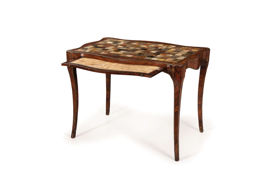Il commesso ha una storia tutta fiorentina ed è proprio nel capoluogo toscano, sotto il dominio dei Medici, che raggiunge il suo massimo splendore. Già nel Quattrocento vi erano fiorenti botteghe che praticavano questa nobilissima manifattura, perfezionata e regolamentata definitivamente nel 1588 grazie a Ferdinando I de’ Medici, che istituì la Galleria dei Lavori, oggi nota come Opificio delle Pietre Dure, con il fine di tutelare le produzioni per i Granduchi e di tramandare il metodo di lavoro. Così fu, dato che persino durante l’ottocentesco regno degli Asburgo-Lorena, l’arte del commesso venne praticata a livelli eccellenti.