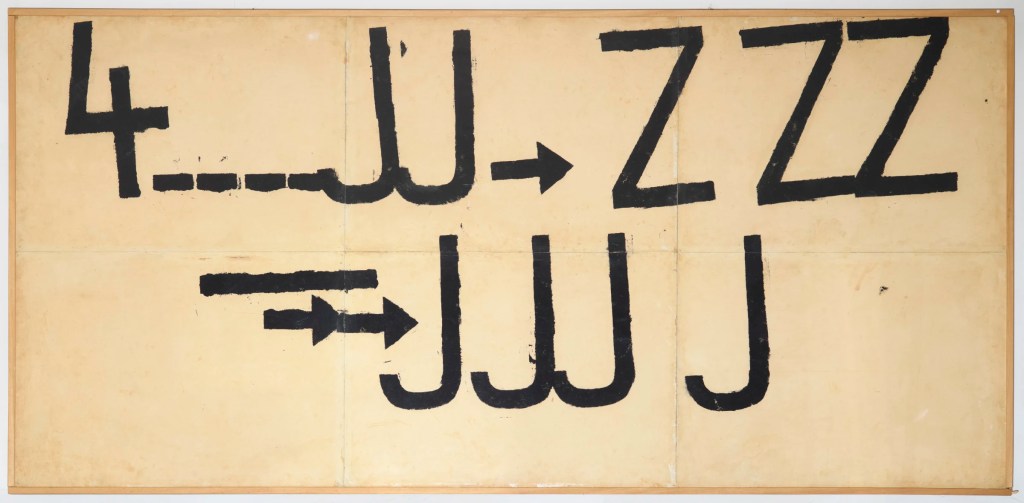 Proprio da queste due anime originarie e primordiali nasce uno dei temi più affascinanti della produzione di Kounellis, quello rappresentato dalle impronte di lettere e segni. Tali elementi, fondativi del linguaggio umano, caratterizzano le opere del maestro greco – naturalizzato italiano – negli anni tra il 1959 e il primo quinquennio dei Sessanta.